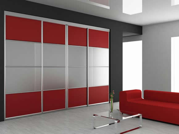大衣柜空間的3門面板的流行配置是2個鑲板門和1個鏡面門。 安裝在三個運行軌道上,所有門都在各自的軌道上單獨移動,因此門可以移動到所需的任何位置。 這對于共享的衣柜特別有用,用于將鏡像門移動到所需位置。 雙門,其中一扇門配有鏡面板也很受歡迎。