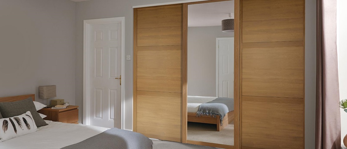 這款門的中間是一面鏡子,會讓房間里的光線更充足,兩邊則是用橡木效果衣柜門,干凈的線條給房間增加了整潔寬敞的感覺,這種設計是一個多用途的、適合各種各樣的房間的設計,能夠很好的將傳統和現在相結合,可以給你的臥室更多的光線和增加空間感。